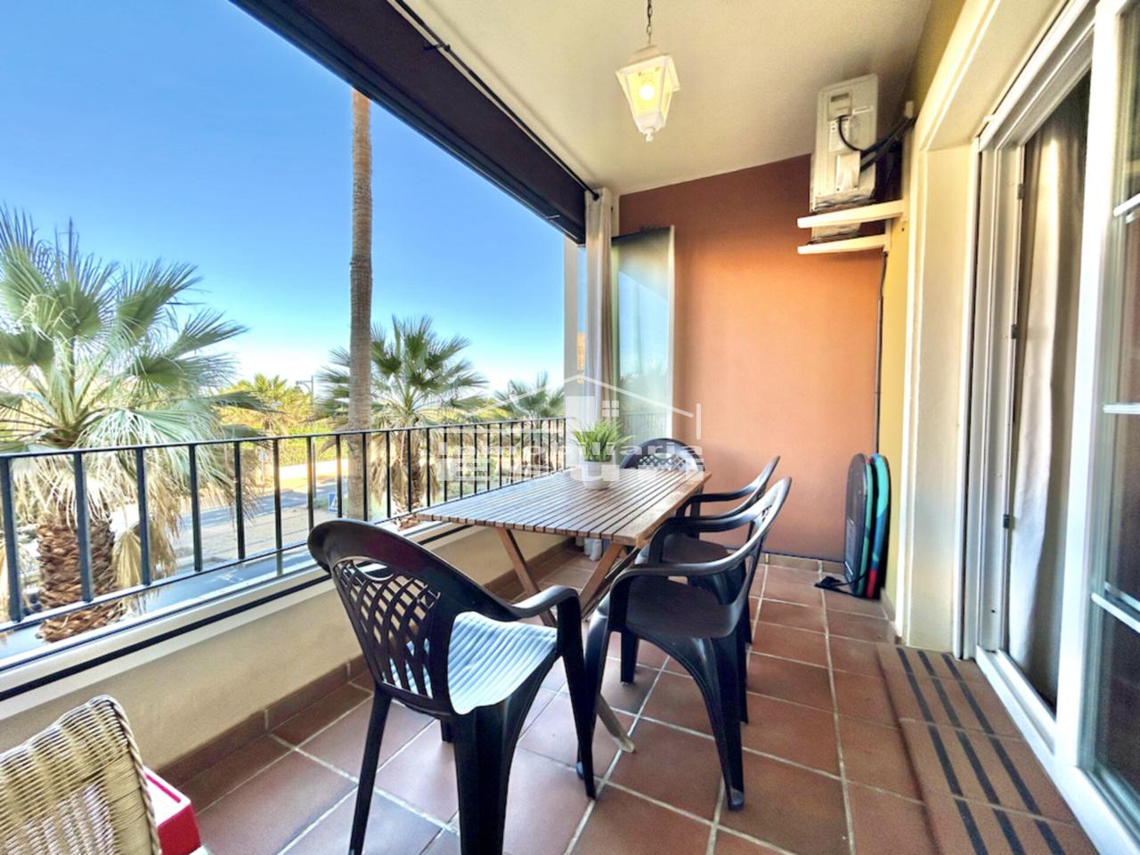 Apartamento situado en primera planta 2 dormitorios, salón comedor, cocina equipada, aire acondicionado en salón comedor, baño, terraza con vistas a la playa, plaza de aparcamiento cubierta, piscina comunitaria (Abierta al público en temporada alta) y zonas ajardinadas.